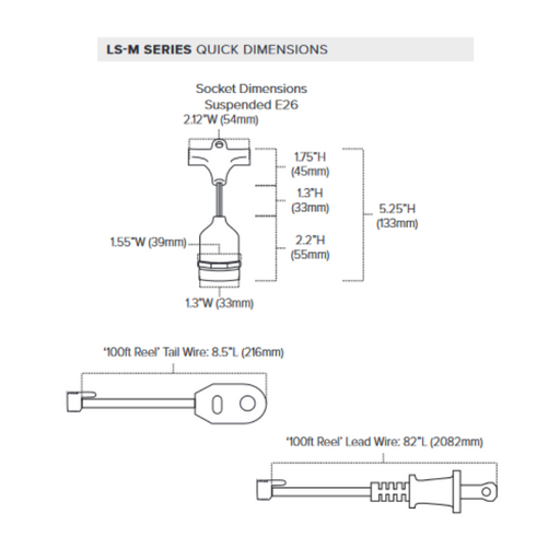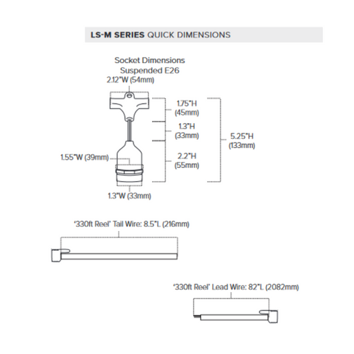 View full detailsFeatures Wattage: 25W per socket Voltage: 120V Socket Type: Suspended E26 Sockets: 50 Socket Spacing: 24" Cut Increments: Field cuttable (Must b...