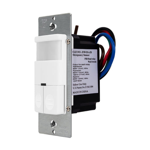 El ENERLITES DWOS-JD es un interruptor de pared con sensor de movimiento de relé doble que opera dos luces separadas utilizan...
